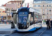 САНКТ-ПЕТЕРБУРГ, 25 мая. /ТАСС/. Обновленный отечественный трамвай "Богатырь М" презентовали на Невском заводе электрического транспорта в Петербурге, на данный момент это самый инновационный состав в России. В комплектацию добавлен пол с подогревом, элементы автопилотирования, а также увеличено количество пассажирских мест. Об этом, отвечая на вопрос ТАСС, сообщил директор завода Сергей Назаров.